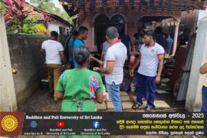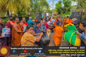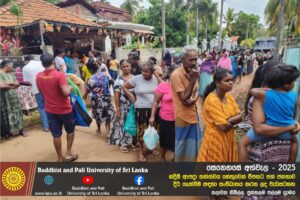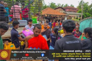 හදිසි ආපදා තත්ත්වය හේතුවෙන් විපතට පත් ජනතාව දිරි ගැන්වීම සඳහා ශ්රී ලංකා බෞද්ධ හා පාලි විශ්වවිද්යාලයේ අභ්යන්තර/බාහිර විද්යාර්ථීන් සහ අධ්යයන/අනධ්යයන කාර්ය මණ්ඩලය සංවිධානය කරන ලද වැඩසටහන හලාවත තිබිල්ල, පුත්තලම පල්ලම ග්රාමය, පල්ලම ප්රාථමික විද්යාලය කේන්ද්රගතව 2025 දෙසැම්බර් 12 වන දින පැවැත්විය.