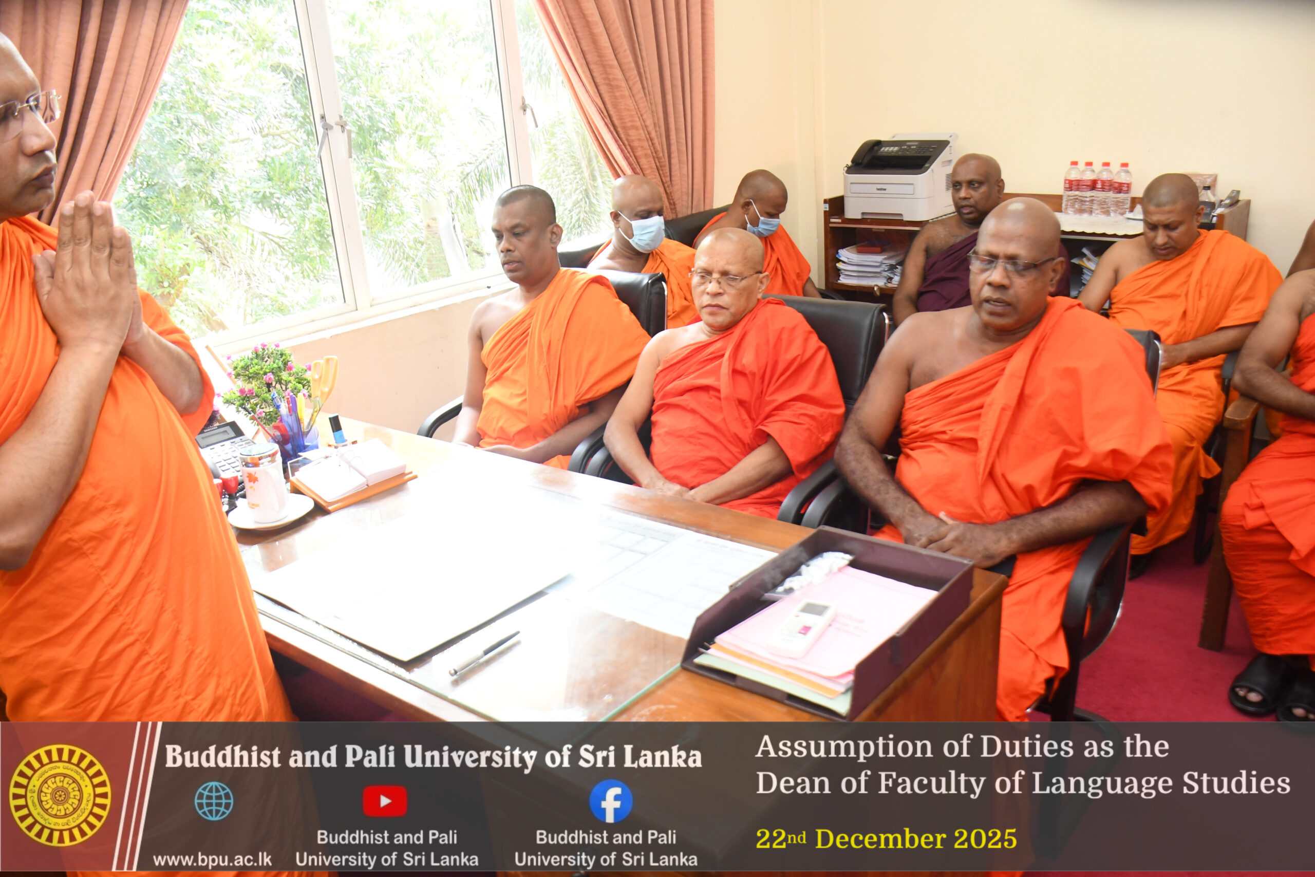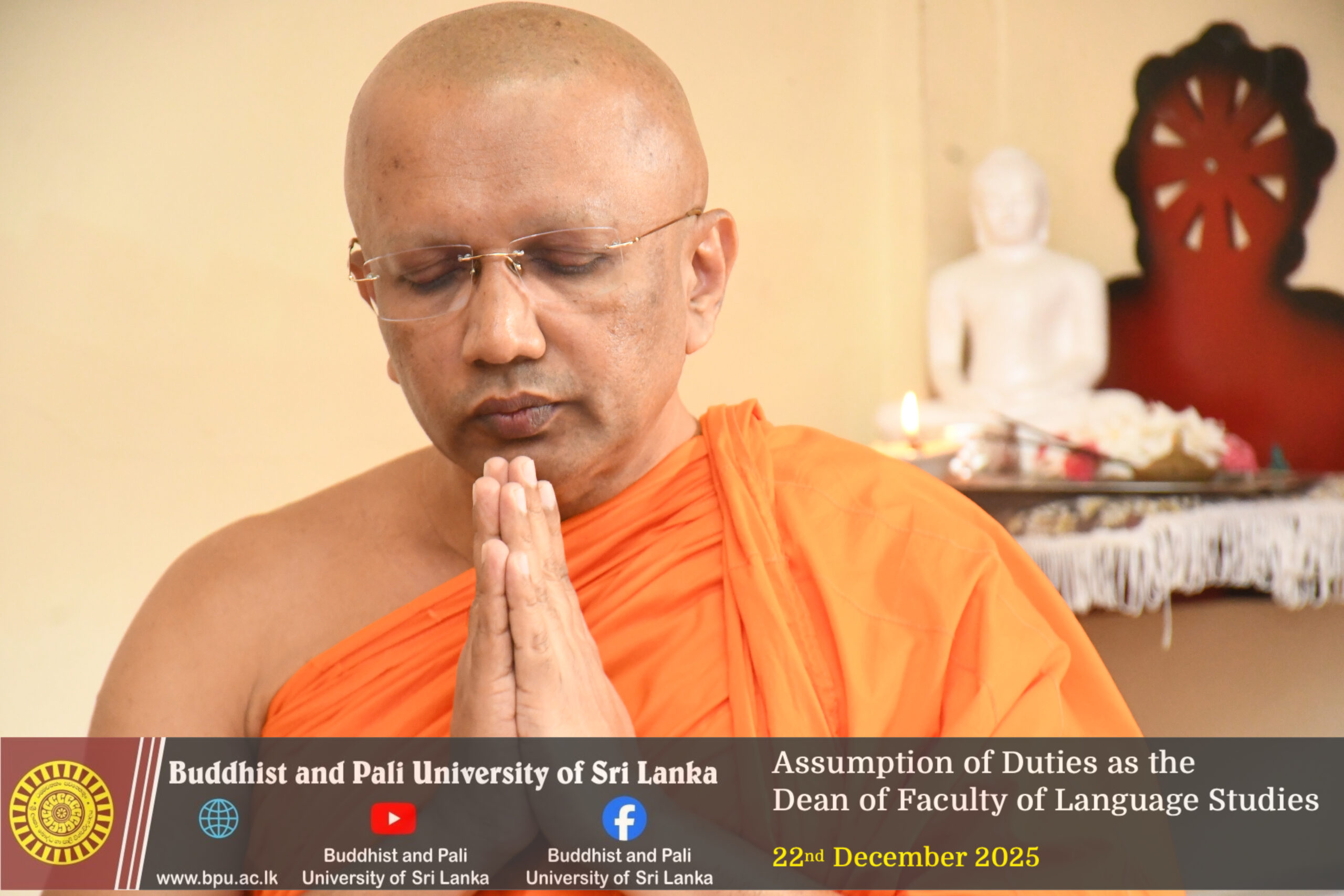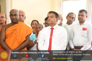 The Buddhist and Pali University of Sri Lanka extends its sincere congratulations to Ven. Professor Gonadeniye Pannarathana Thero on his appointment as Dean of the Faculty of Language Studies and expresses its best wishes for a successful tenure marked by academic excellence and effective administration.