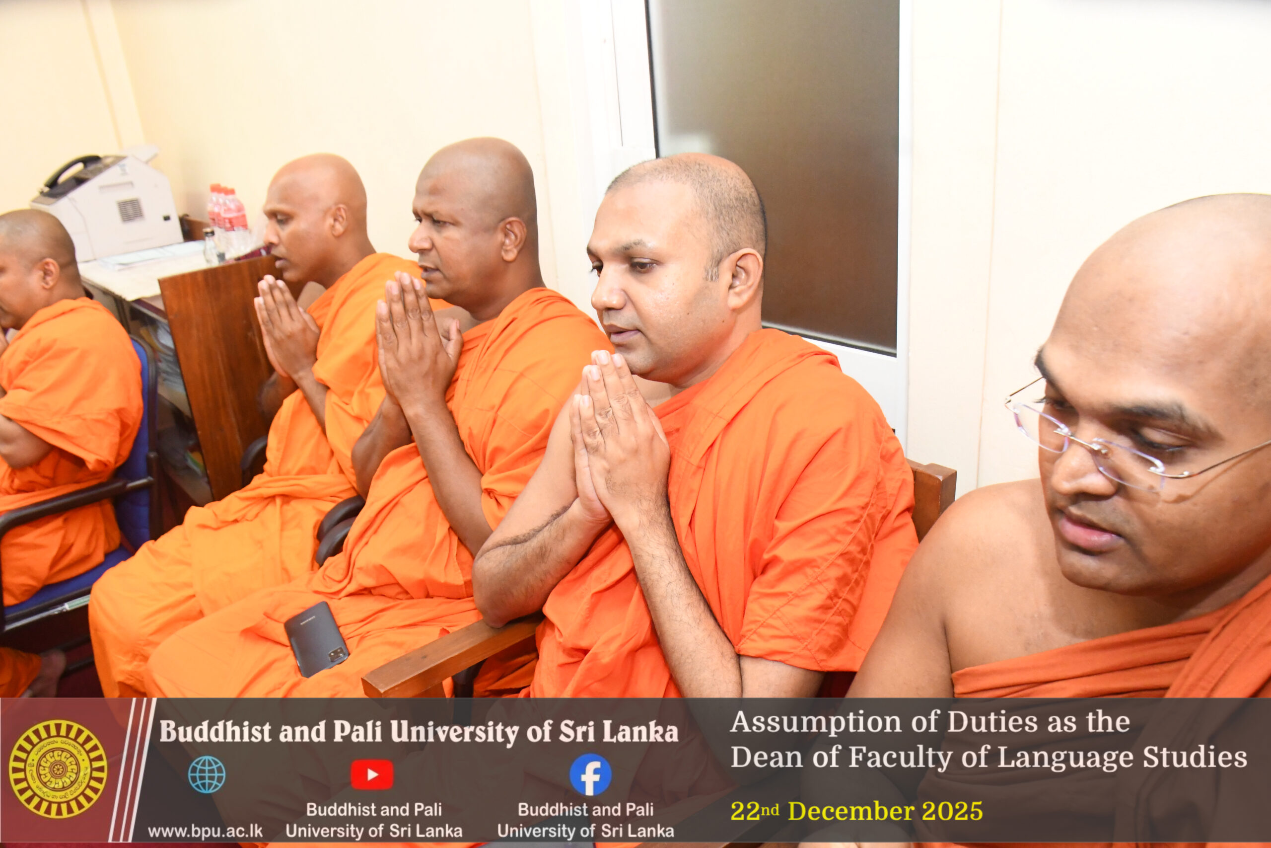 Ven. Professor Gonadeniye Pannarathana Thero, the newly appointed Dean of the Faculty of Language Studies, assumed duties on 22 December 2025.