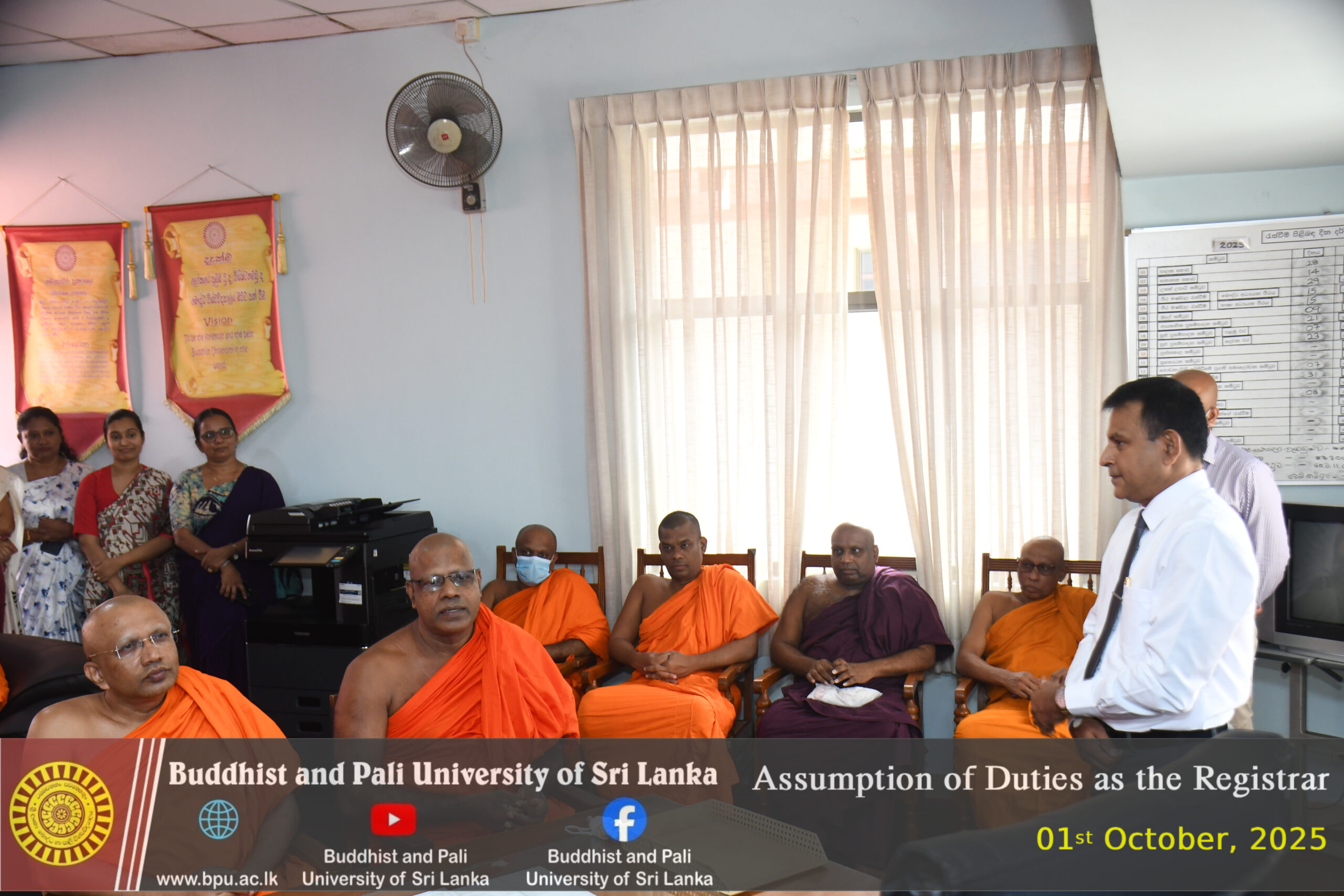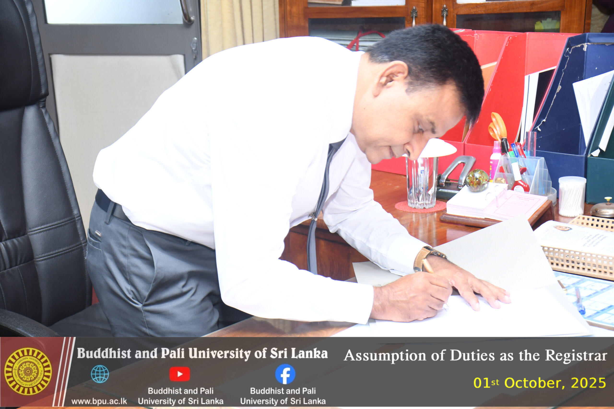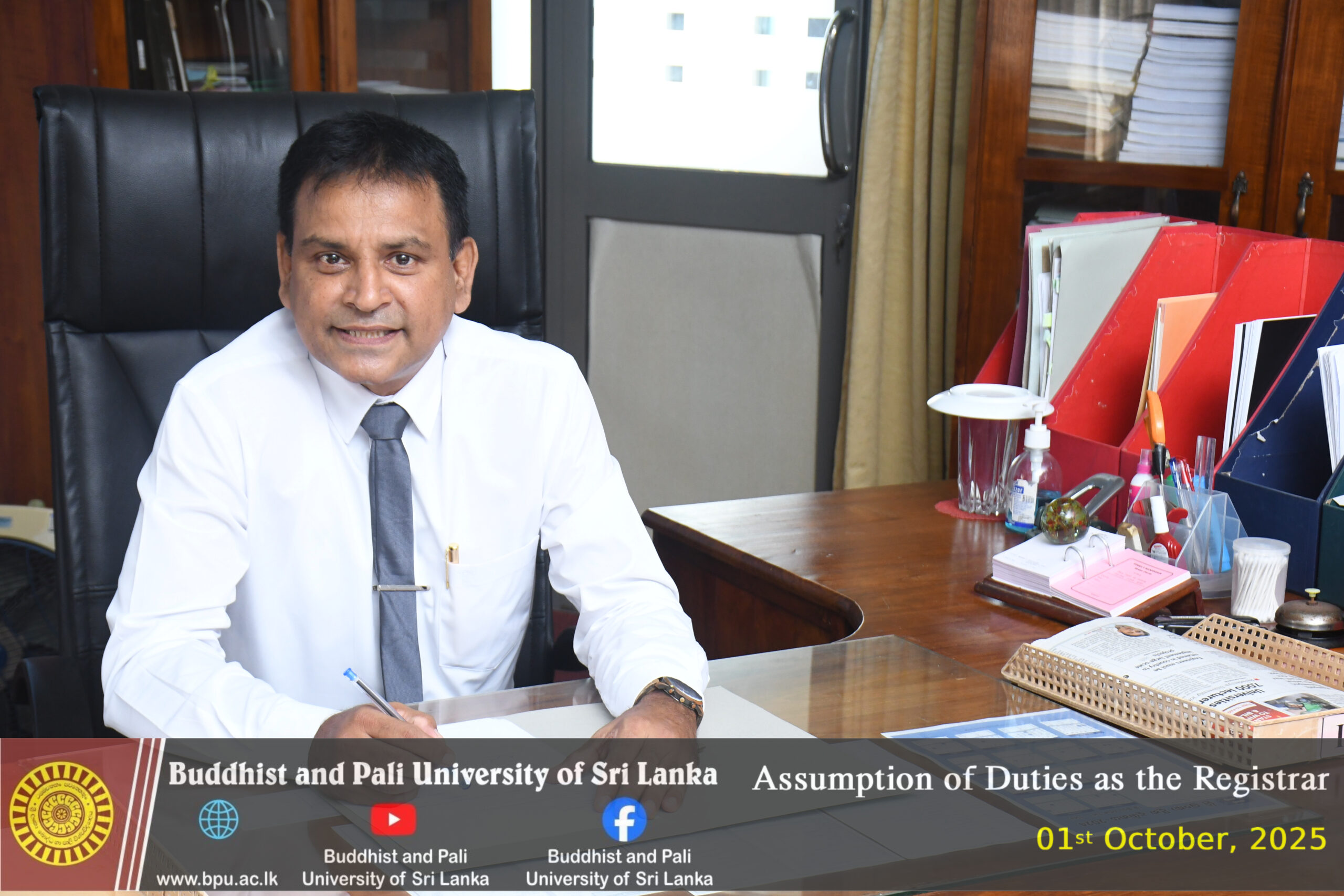 Mr. Manjula Nishantha Thalgahagoda officially assumed duties as the Registrar of the Buddhist and Pali University of Sri Lanka on 01st October 2025.